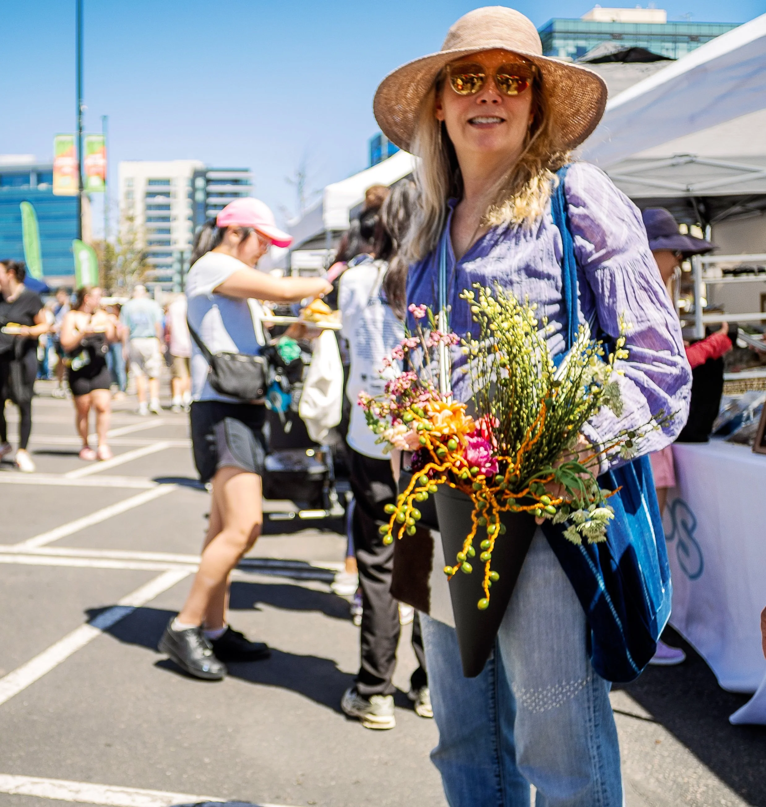 Shop Colorado products IN SEASON like farm flowers, fresh fruit & veggies, house plants & succulents, vegetable starts, local greens, culinary herbs, micro greens, organic mushrooms, homegrown tomatoes, Olathe sweet corn, Palisade peaches, Rocky Ford melons, farm eggs, fresh dairy, local honey, jams & jellies, local distilled spirits, locally raised meats, artisanal breads & pastries, coffee & espresso, French cheeses, vegan & gluten-free products, street food stands, handcrafted food & drinks, food trucks, pet treats, pop-up boutiques, fashion trucks, live music, and so much more!